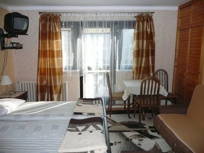 pokój 2,3 osobowy z balkonem pokój z łóżkiem małżeńskim plus jednym łózkiem oddzielnym, usytuowany na pierwszym piętrze budynku, o oknami wychodzącymi na stronę wschodnią; TV-SAT, radiomagnetofon z odtwarzaczem CD, stół, trzykrzesła, szafaubraniowa, nocne szafki, sprzęt plażowy