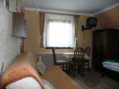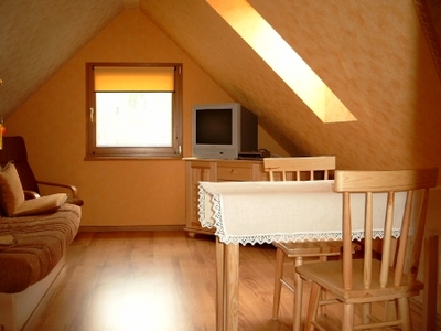 pokój 2 osobowy z tarasem pokój z łóżkiem małżeńskim, usytuowanyna pierwszym piętrze budynku, z oknami wychodzącymi na stronę południową; TV-SAT, radiomagnetofon z odtwarzaczem CD, stół, dwakrzesła, szafa ubraniowa, nocne szafki, sprzęt plażowy