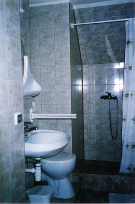 każdy z powyższych pokoi posiada oddzielną łazienkę, usytuowaną na korytarzu vis a vis poszczególnego pokoju
