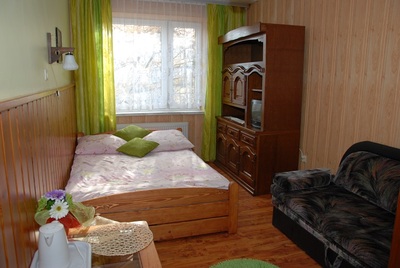 Dwa dwuosobowe łóżka, (maksymalnie 4 osoby w pokoju). W zależności od potrzeb pokoje mogą być dwu, trzy lub cztero osobowe. Parking do dyspozycji gości. Możliwość skorzystania z grilla i ogrodu. Wi-fi w pokojach.
